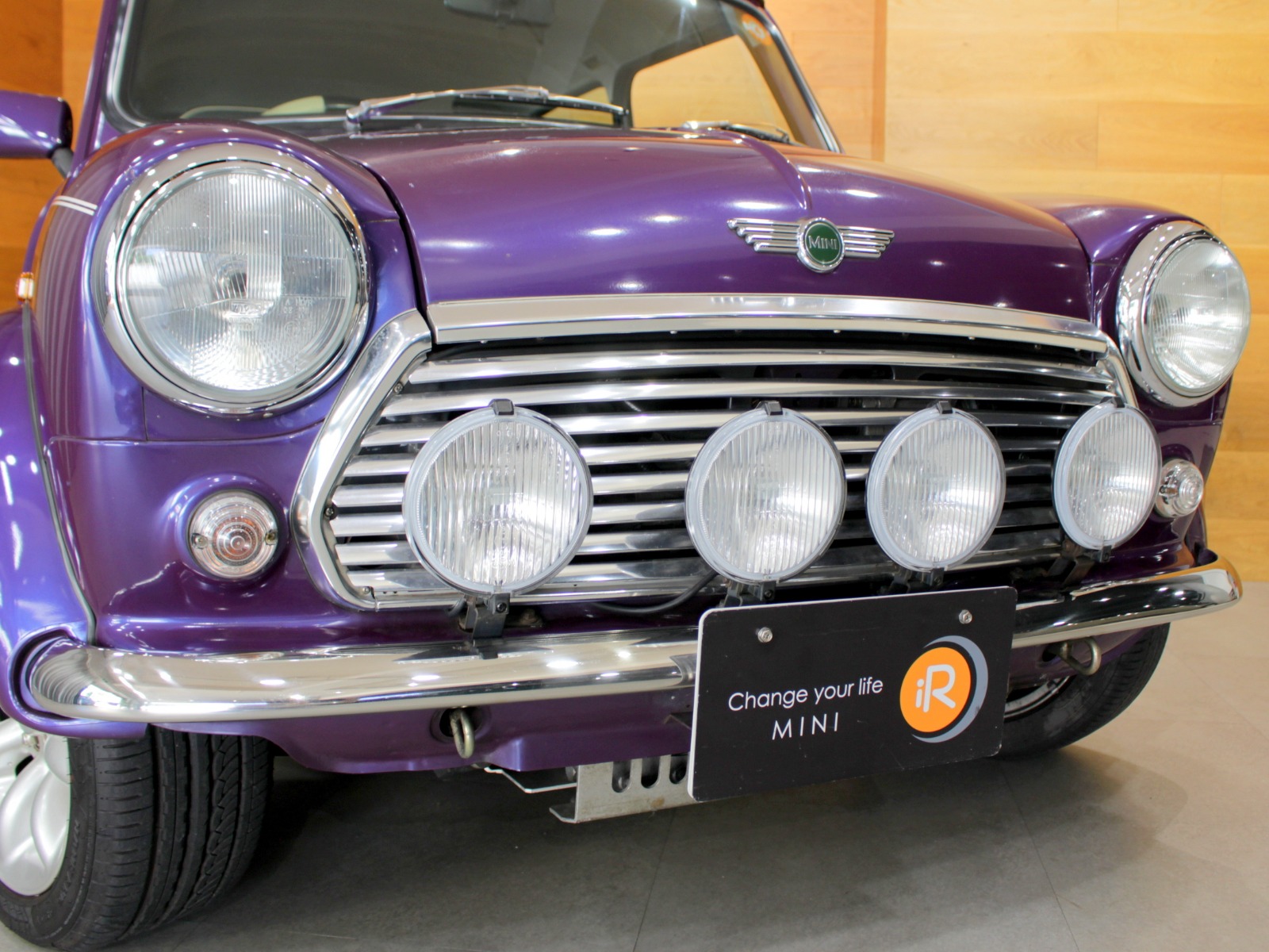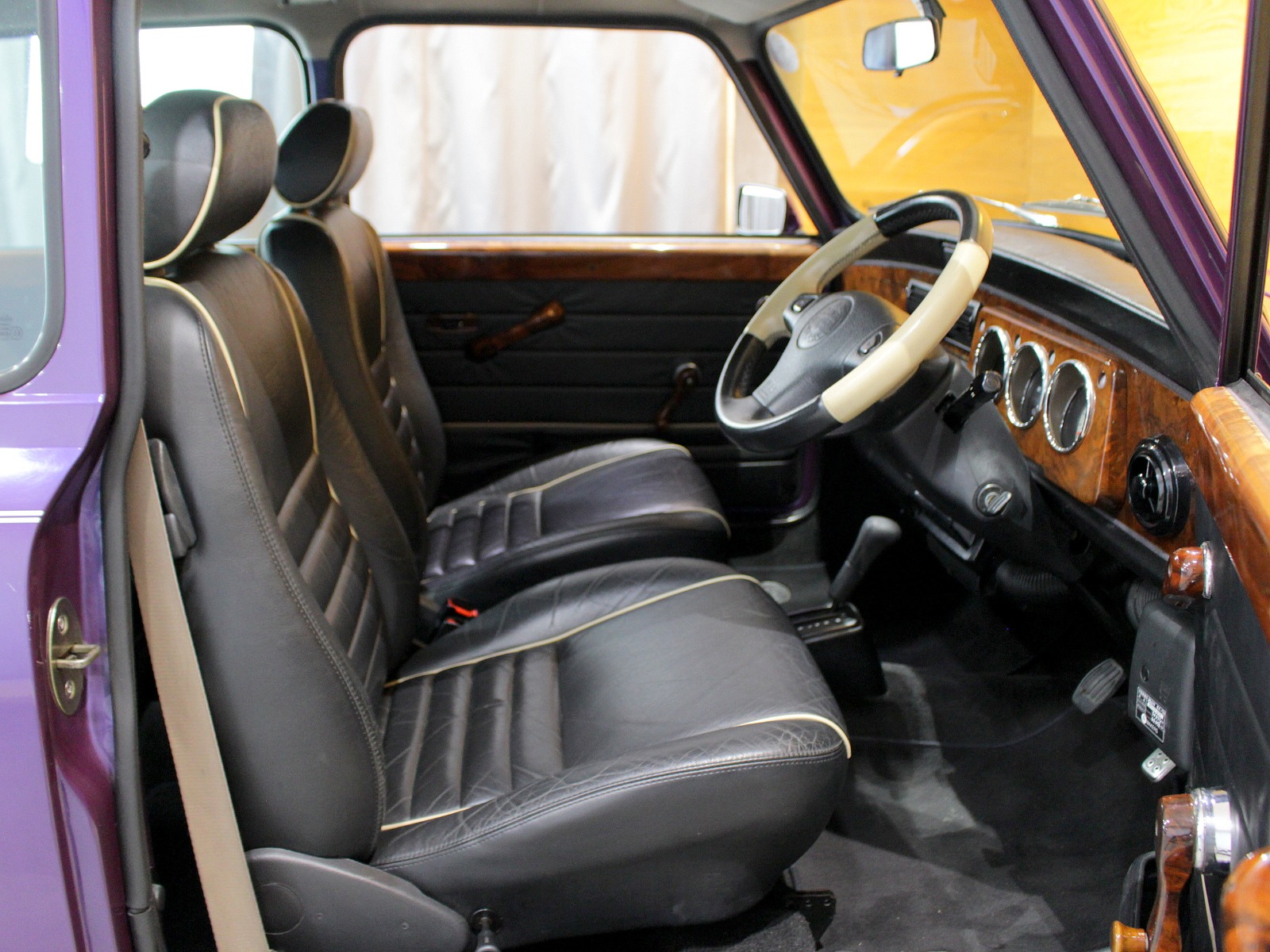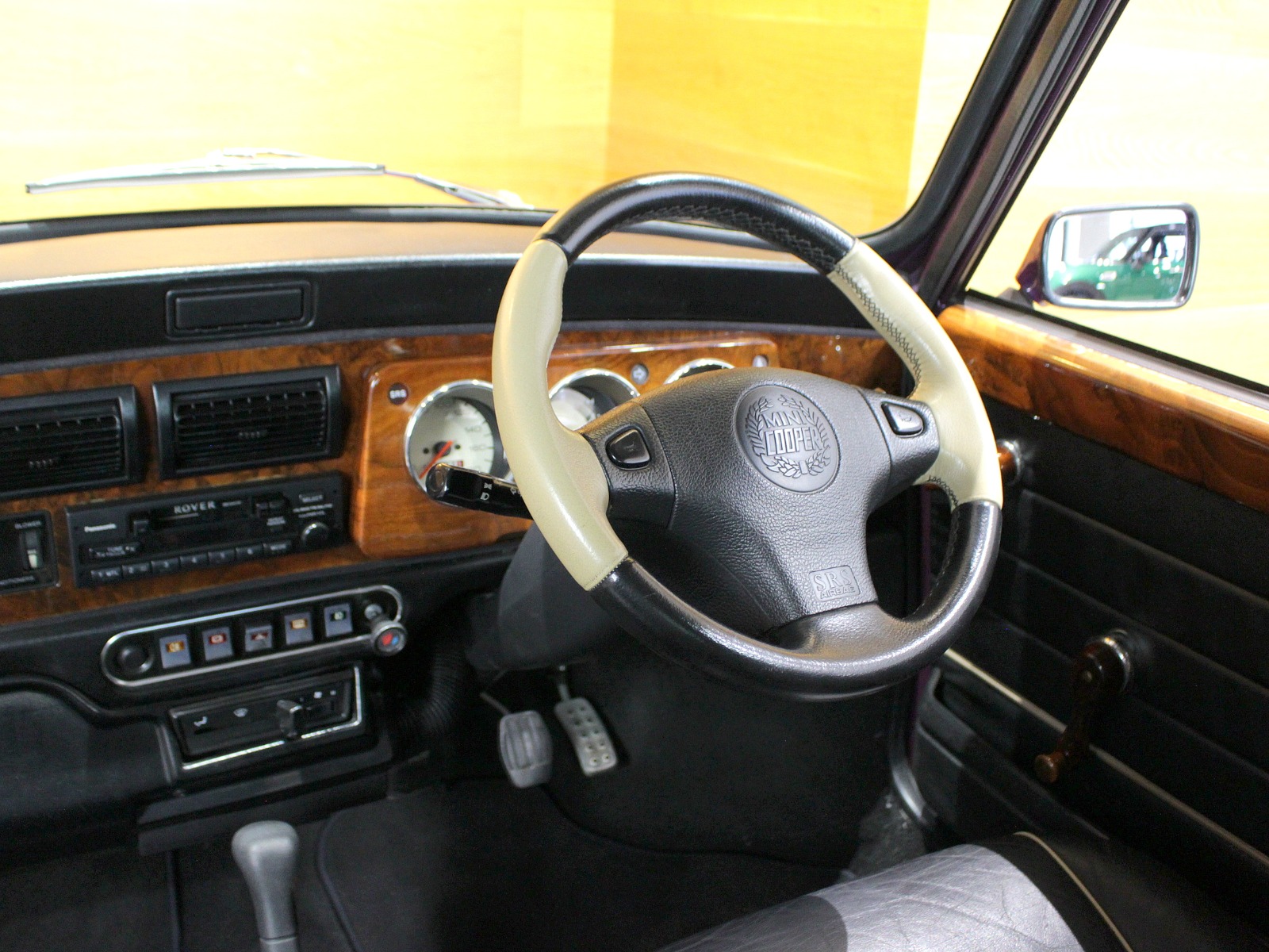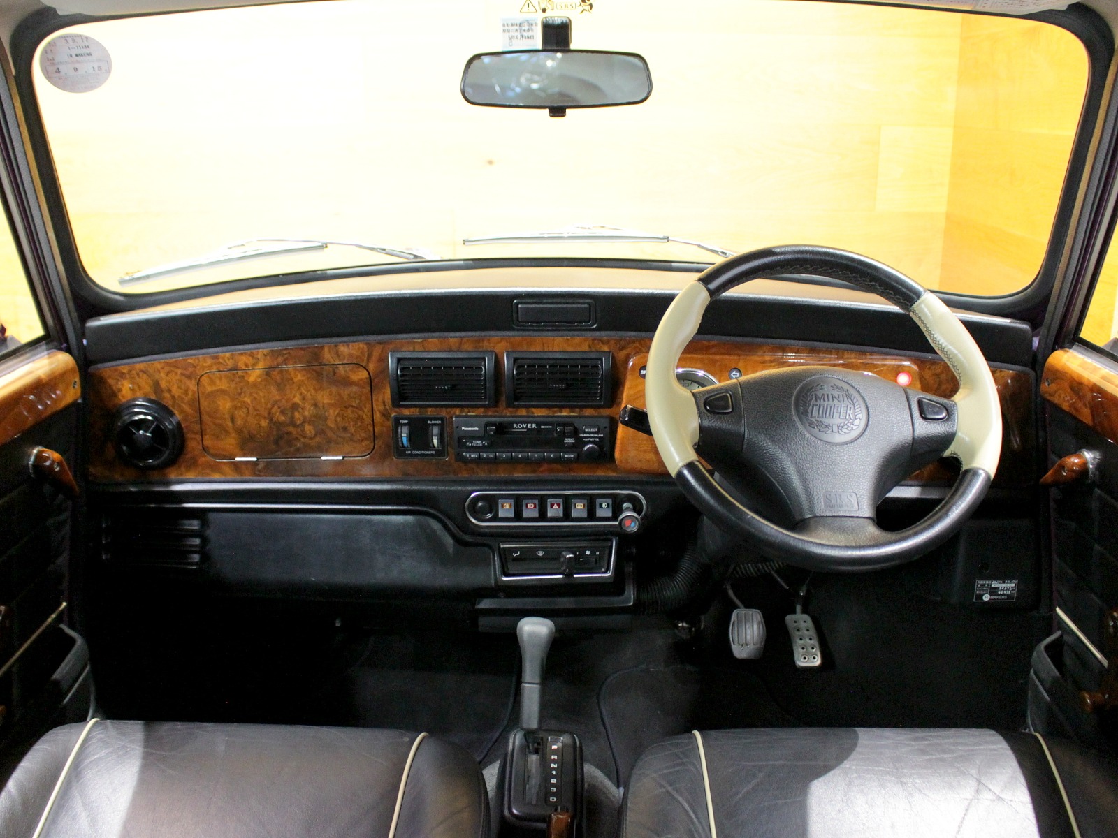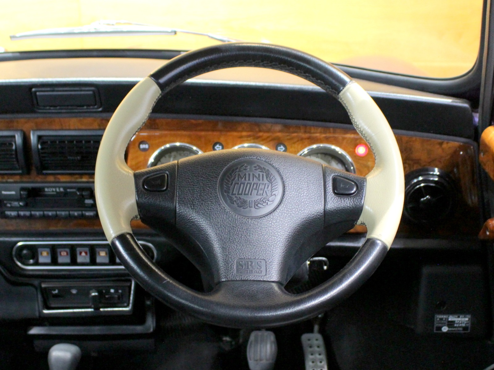 ほぼ新車時のオリジナルコンディションの一台で、純正オプションのウッドドアハンドルやCDチェンジャーといった希少な当時のオプションパーツもそのまま搭載されています。ローバーミニ必須装備のハイローキットやアンダーガードは取付済み。
