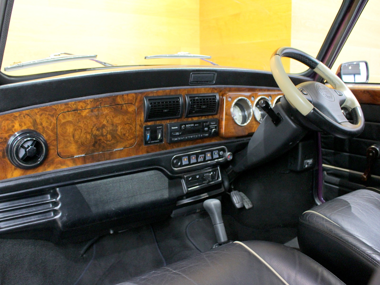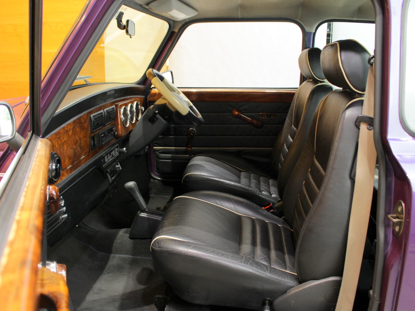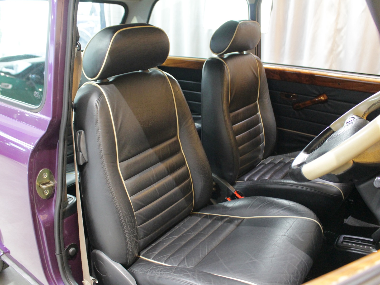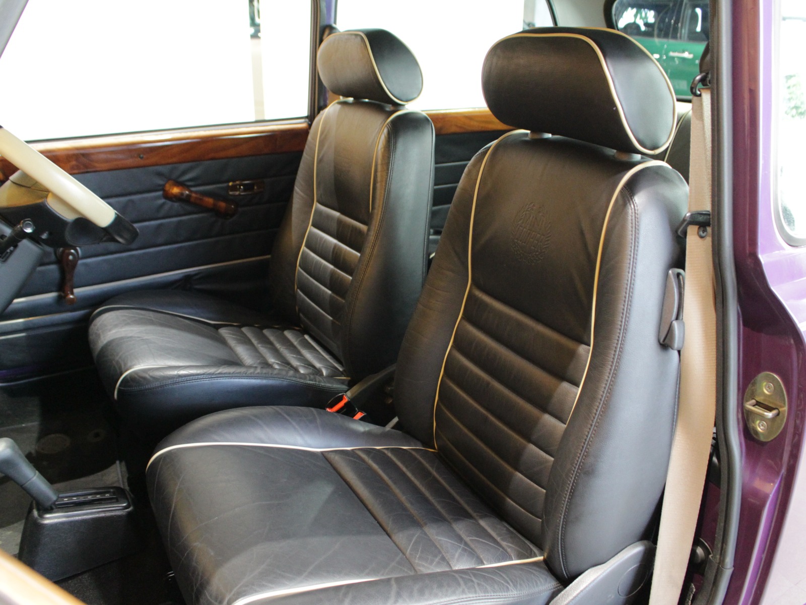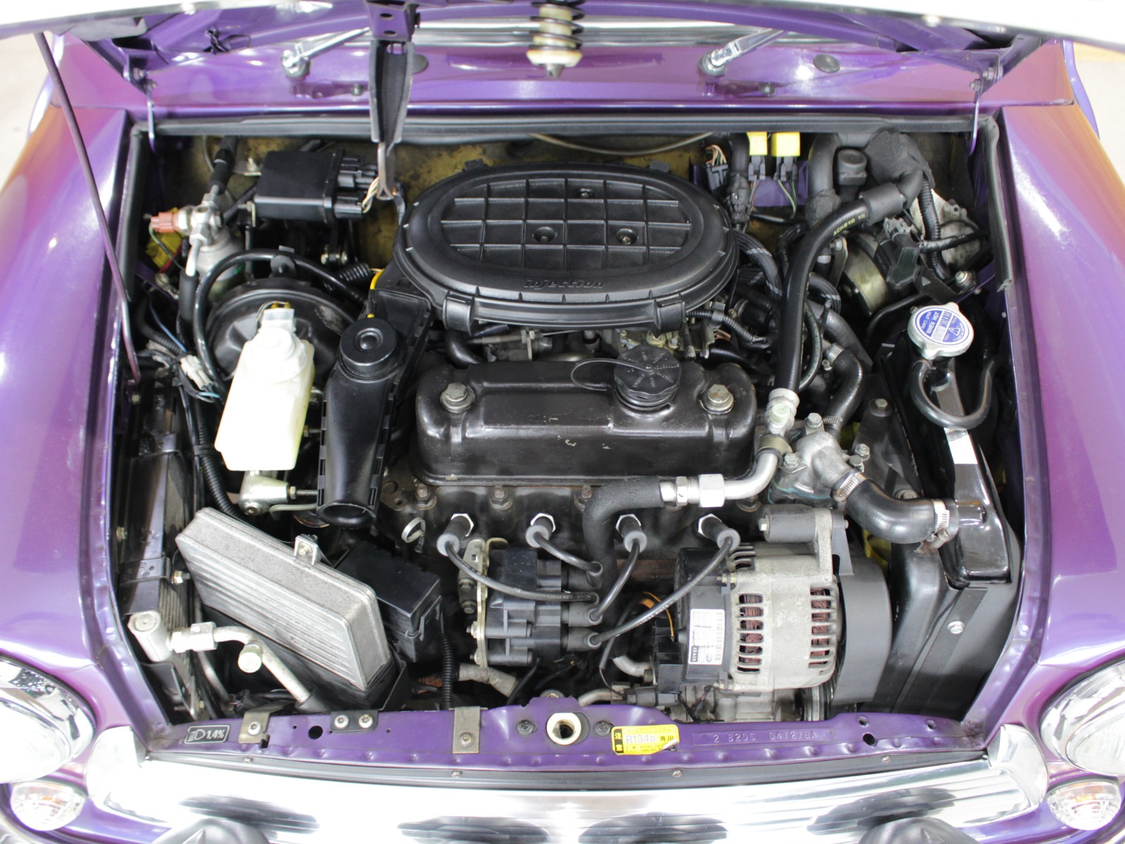 ほぼ新車時のオリジナルコンディションの一台で、純正オプションのウッドドアハンドルやCDチェンジャーといった希少な当時のオプションパーツもそのまま搭載されています。ローバーミニ必須装備のハイローキットやアンダーガードは取付済み。