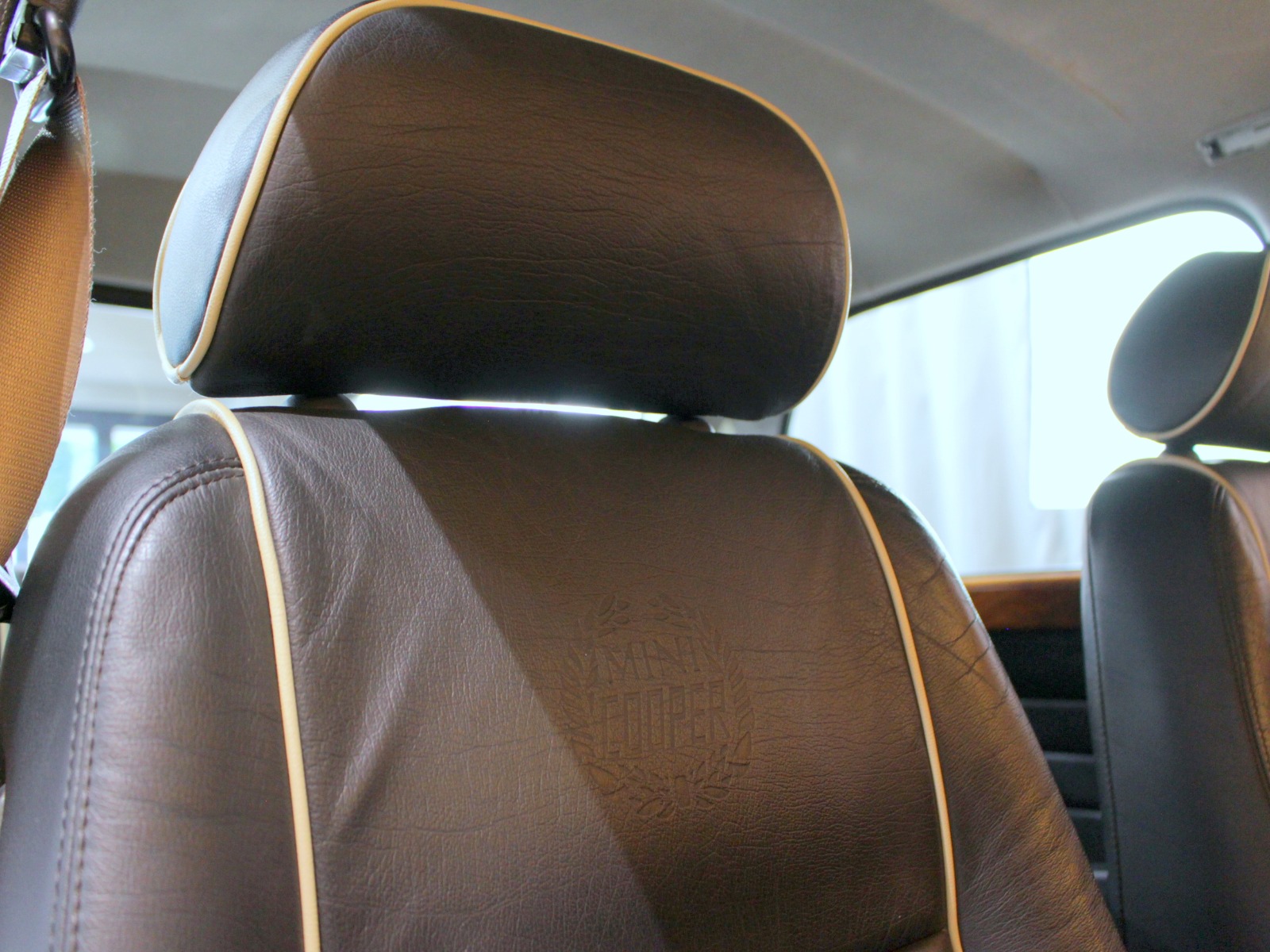 ベースモデルのクーパーと違い、スポーツパックはボディとルーフ、ドアミラーが同色でボンネットストライプも非装着。足回りには13インチホイールを採用し、これに伴いフェンダーもワイド化。ショックアブソーバーにはオランダのKONI製ショックアブソーバーが装備さます。